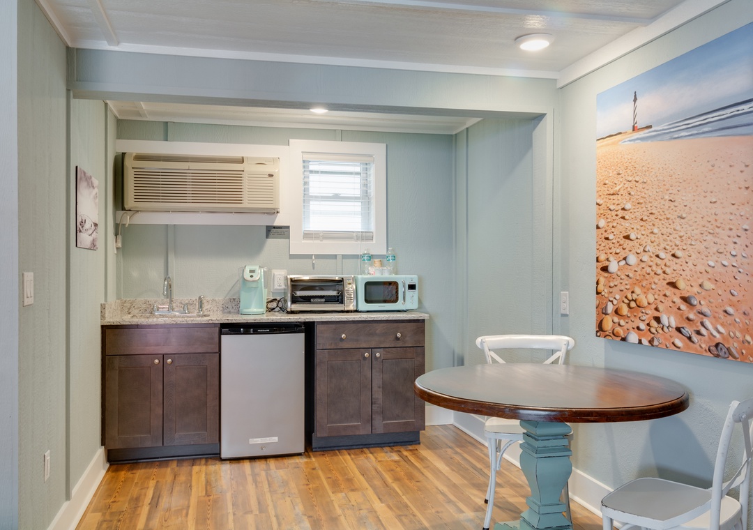This spacious surf villa features a king bed, mini-fridge, microwave, coffee maker & convection toaster oven. Enjoy a relaxing swim in our community pool or head to the beach! The nearest beach access is Atlantic Street, which is less than 300 feet south of us!
