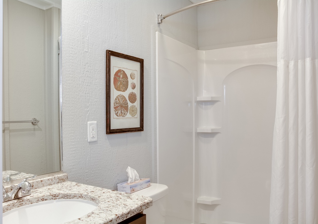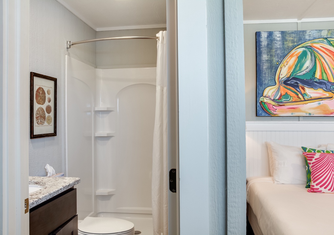 This room features a queen sized bed, mini-fridge, microwave, Keurig coffee maker and a convection toaster oven.